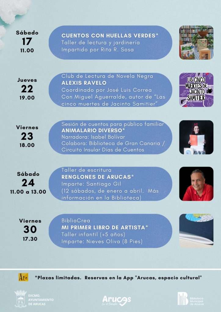 Estos datos son fruto del trabajo continúo, en el que destaca la amplia programación de actividades culturales y de fomento de la lectura. La Biblioteca de Arucas contempla alrededor de 300 propuestas diferentes para todo tipo de públicos.