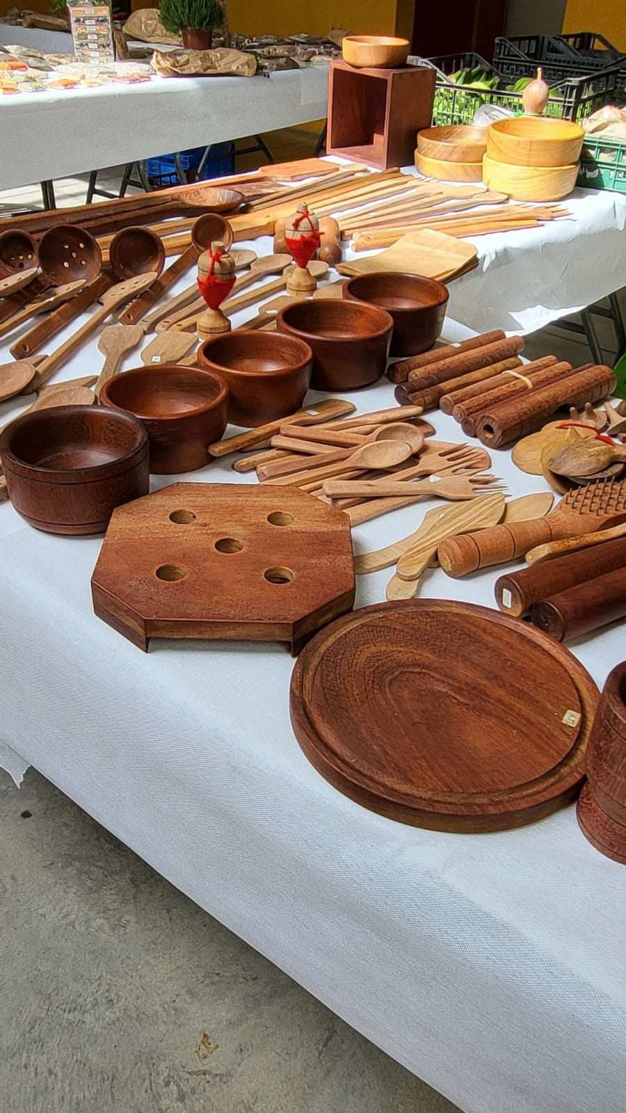 Entre los distintos puestos, es posible encontrar desde delicados bordados, velas artesanales y tejidos típicos, hasta piezas únicas elaboradas en madera, trabajadas a mano por artesanos locales.