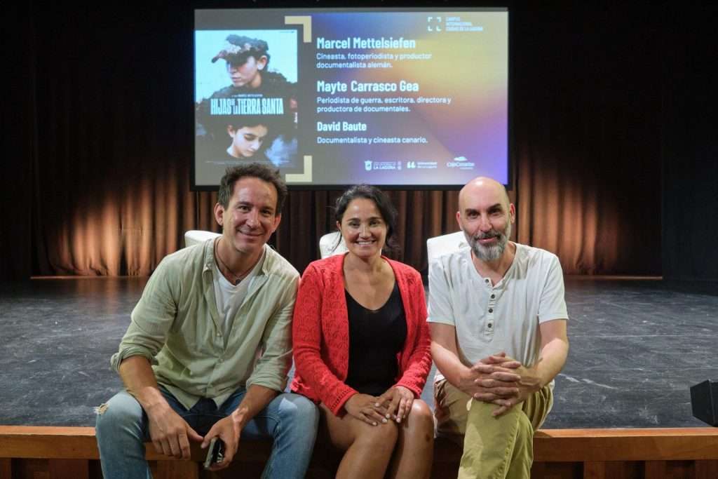 La proyección del documental ‘Hijas de la Tierra Santa’, propuso mirada al conflicto palestino-israelí a través del prisma de dos niñas, que contó con la presencia de su director Marcel Mettelsiefen y la productora ejecutiva Mayte Carrasco, moderado por el documentalista y cineasta canario David Baute.
