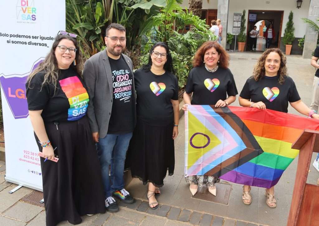 Bajo el paraguas de la Red Asterisco y a través de Diversas Canarias se procedió a la lectura del manifiesto de apoyo a la comunidad LGBTIQA+ y al izado de la bandera arcoíris