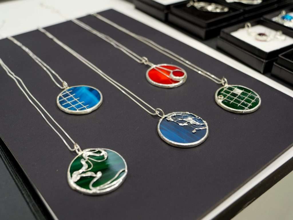 Entre las firmas participantes, Cuerísimo presenta su Colección 2026 “Alhambra”, bisutería en cuero que combina corte láser y pintura a mano con acabados en plata y oro. Agostina Santini muestra “REDES II”, piezas que fusionan vidrio y redes de cobre soldadas artesanalmente, mientras Pendientera apuesta por “Museo personal”, joyería contemporánea elaborada en plástico vegetal biodegradable, inspirada en el arte moderno.
