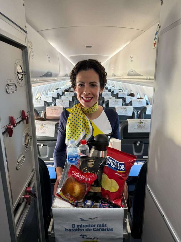 La compañía aérea canaria Canaryfly ha estrenado su servicio de venta a bordo en las rutas desde Tenerife, lo que supone completar la implantación de este servicio en toda su red de vuelos interinsulares. Con esta incorporación, todos los pasajeros de la aerolínea podrán disfrutar de una oferta de snacks y bebidas diseñada para hacer el viaje más cómodo y agradable.